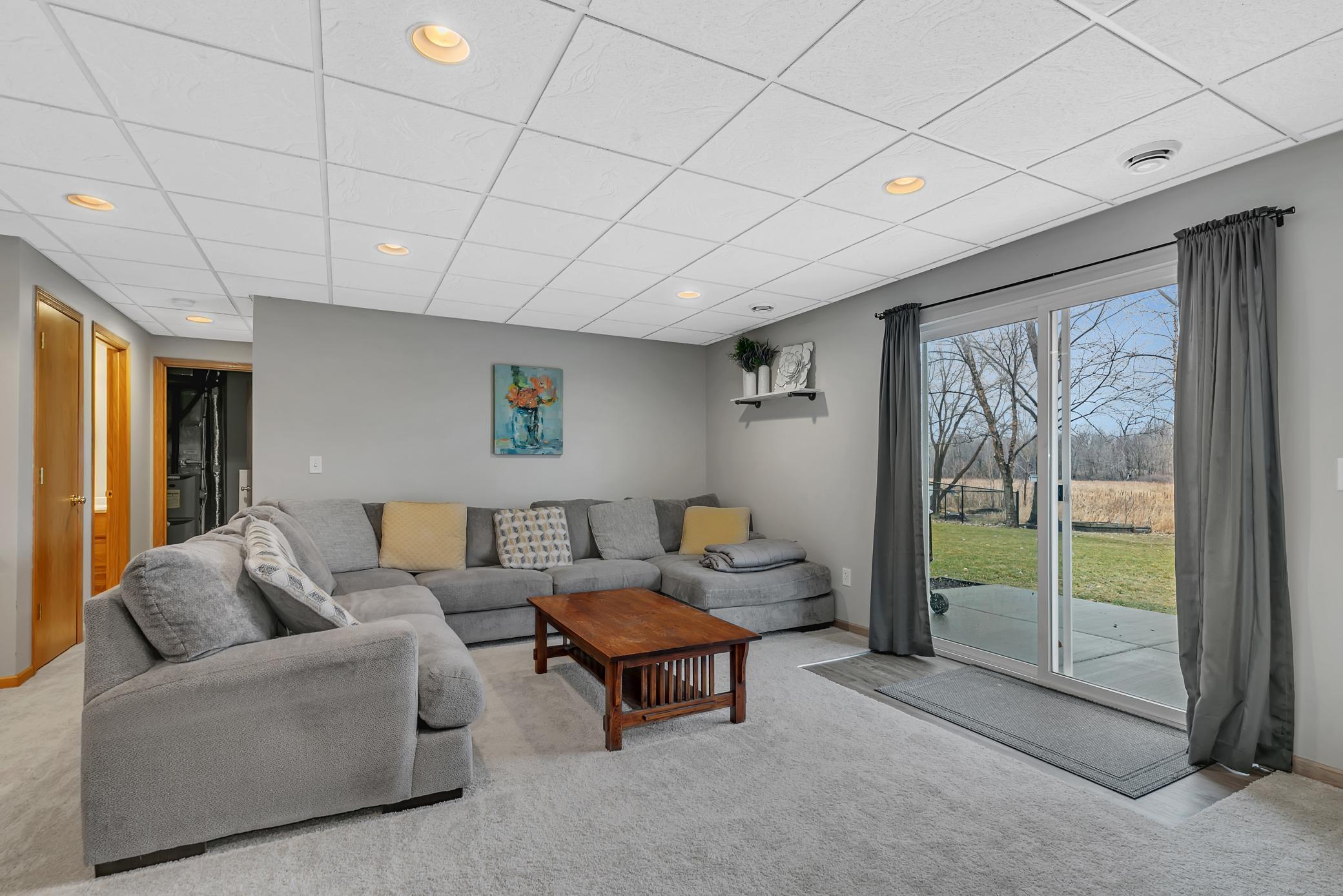 Beautifully updated rambler with a full walk out basement offers so much of what you seek. Near parks, lakes and abutting a natural preserve with no backyard neighbors- surely this summer will be the best in your new Buffalo location. Find a covered porch to welcome you and a spacious foyer entry with immediate views extending the length of the home to the beautiful backyard. Subtle updates throughout the home will have you falling in love. New carpet, all new paint, granite tops, light fixtures and mirrors. Two sizable main floor bedrooms and a large suite in the lower level. Both living rooms offer tons of space to spread out, with the lower living having bonus flex area and a walk out to the back yard. Two stall attached garage, concrete drive, and 1/3 block away from neighborhood park. Embrace this location, and walk to the lake this summer. See professional pictures for further description and enjoy the fall drone to see the surrounding natural amenity.