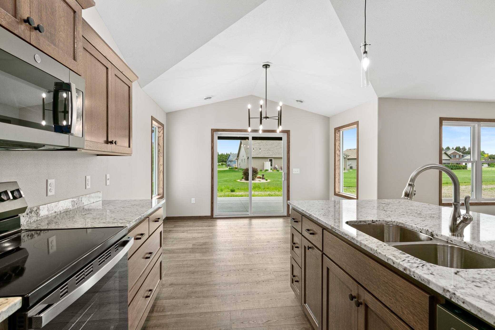 Uniquely designed floor plan for a grand living space all conveniently accessible on one level! Vaulted ceilings and spacious rooms afford you plenty of living and storage space! Amenities include 3′ doorways throughout, dual sinks in private owner’s bathroom, a tile roll in shower, large mudroom closet, separate laundry room, a rear covered porch to relax on, and an association that takes care of lawn care and snow removal for you! This is the comfortable living experience you have been looking for!
